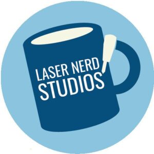 Creates laser cut nerdy goods, primarily Christmas ornaments with geek-themed designs.